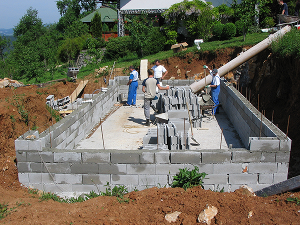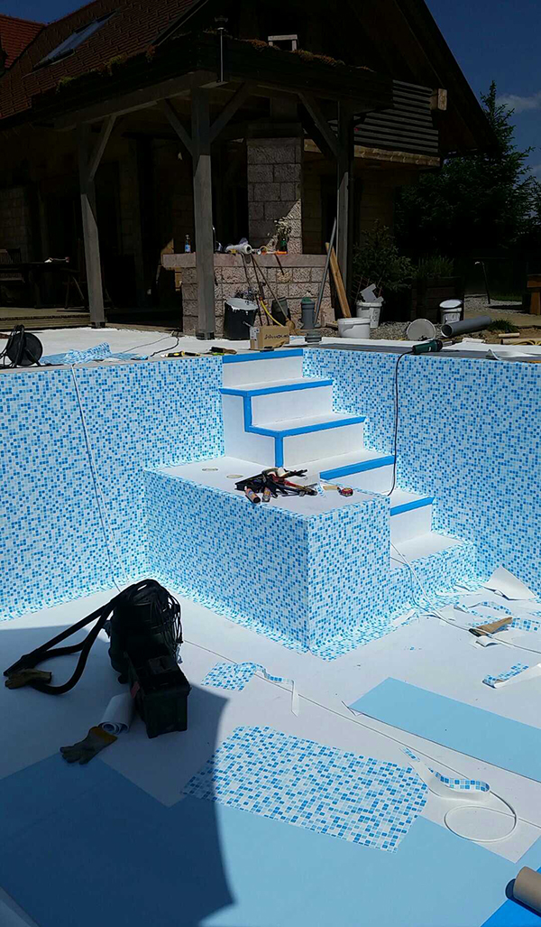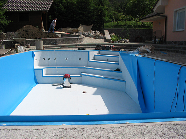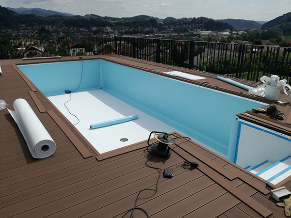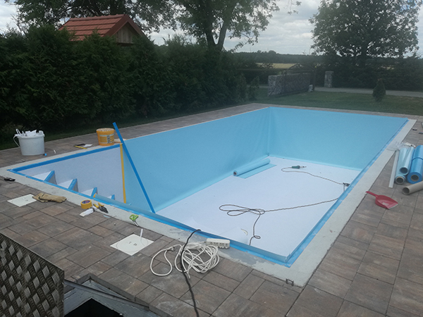 Neodvisno od izbranega gradbenega materiala, je potrebno stene hidroizolirati z našo folijo, za katero jamčimo, da je primerna za bazensko vodo.