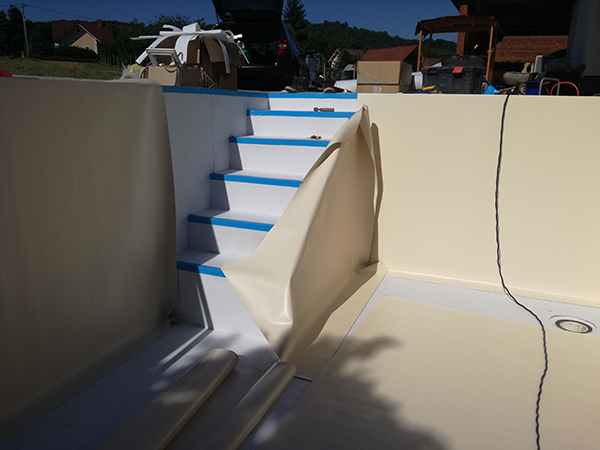 Pod folijo se na stene bazena nalepi antimikrobni filc, ki ščiti folijo.